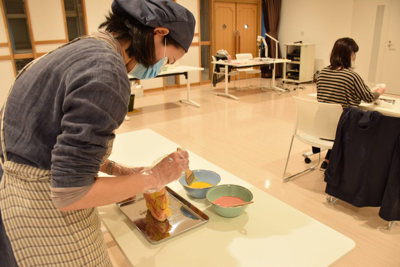 秋風薫る晴天の、11月16日(火)に、「ストールを泥染めしてみよう!」を開催しました。