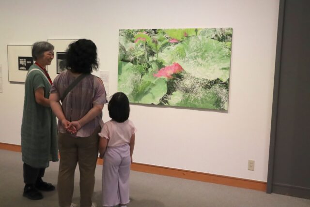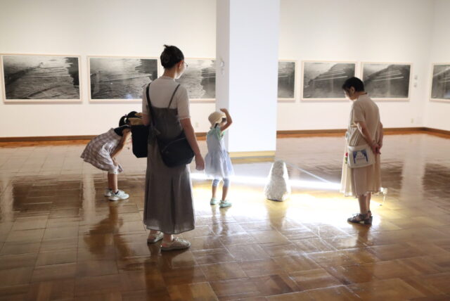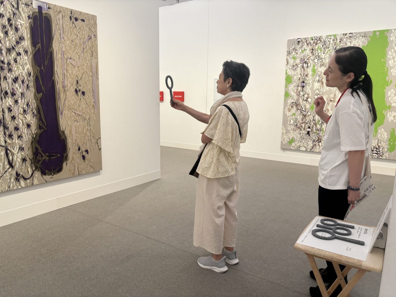 ・外の暑さを忘れるほど、静かで穏やかな時間をお客様と共に過ごすことができました。初対面のお客様にどのようなお声がけをしながら鑑賞したら良いか不安でしたが、「アートが好き」という共通項のもと気になる作品があれば足をとめ、作品に近寄ったり離れたり、キャプションをじっくりと読んで行くうちに、言葉のキャッチボールを介しての鑑賞の大切さを改めてお客様より教えていただきました。