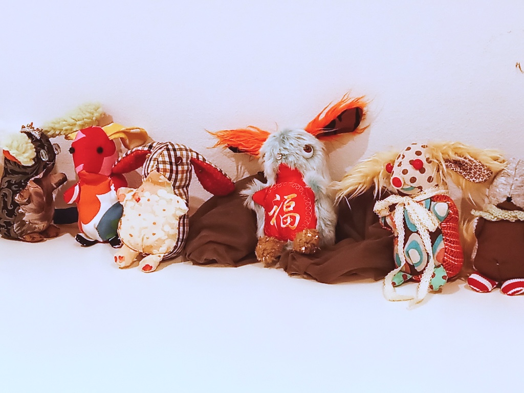 制作した不思議ドーブツ大集合! それぞれの布合わせの個性が出ています。