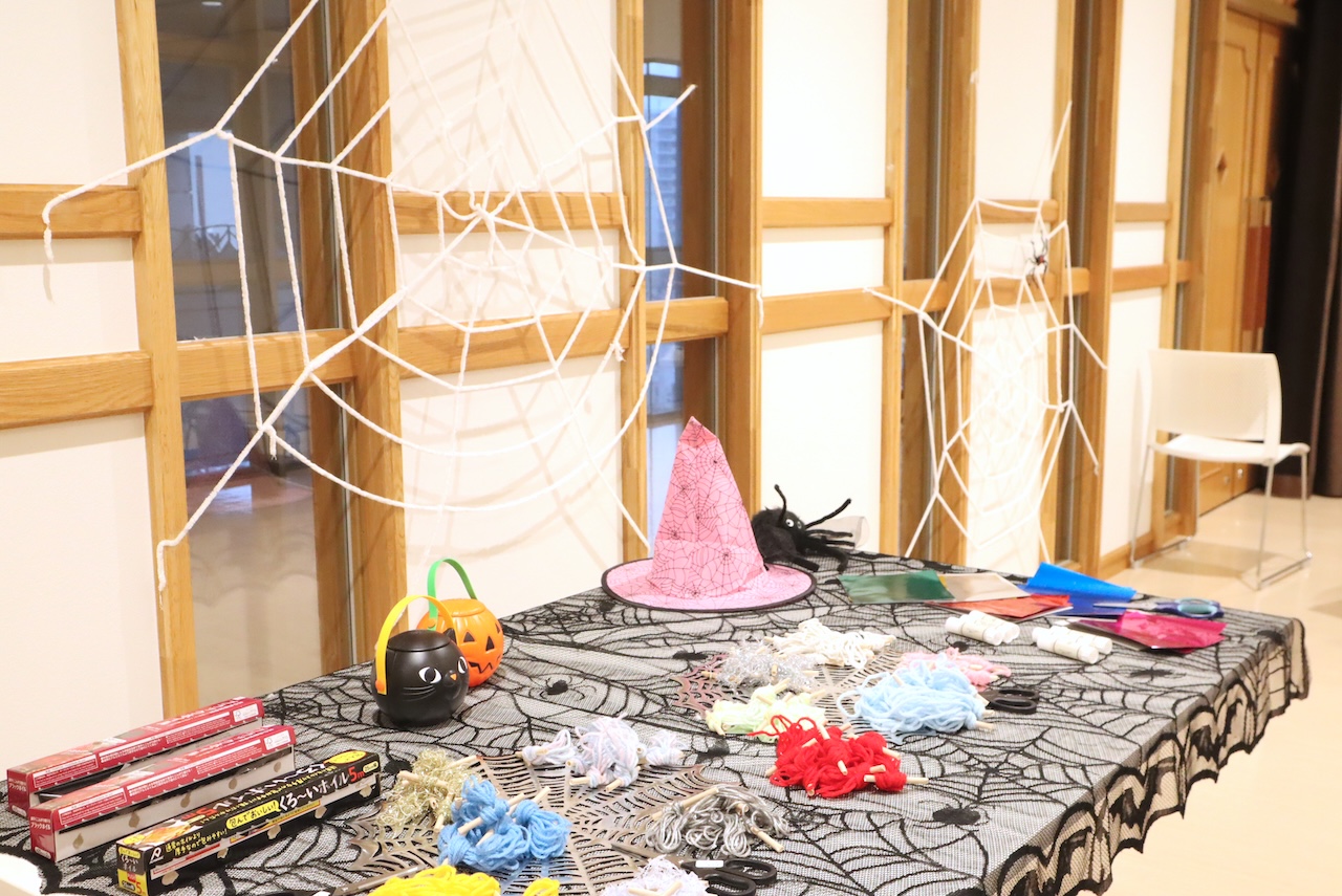 開催日はハロウィン直前、あちこちに大きな蜘蛛の巣と蜘蛛、オレンジ色のカボチャなど、会場をハロウィンムード満載にセッティングしてみなさんをお出迎えしました。