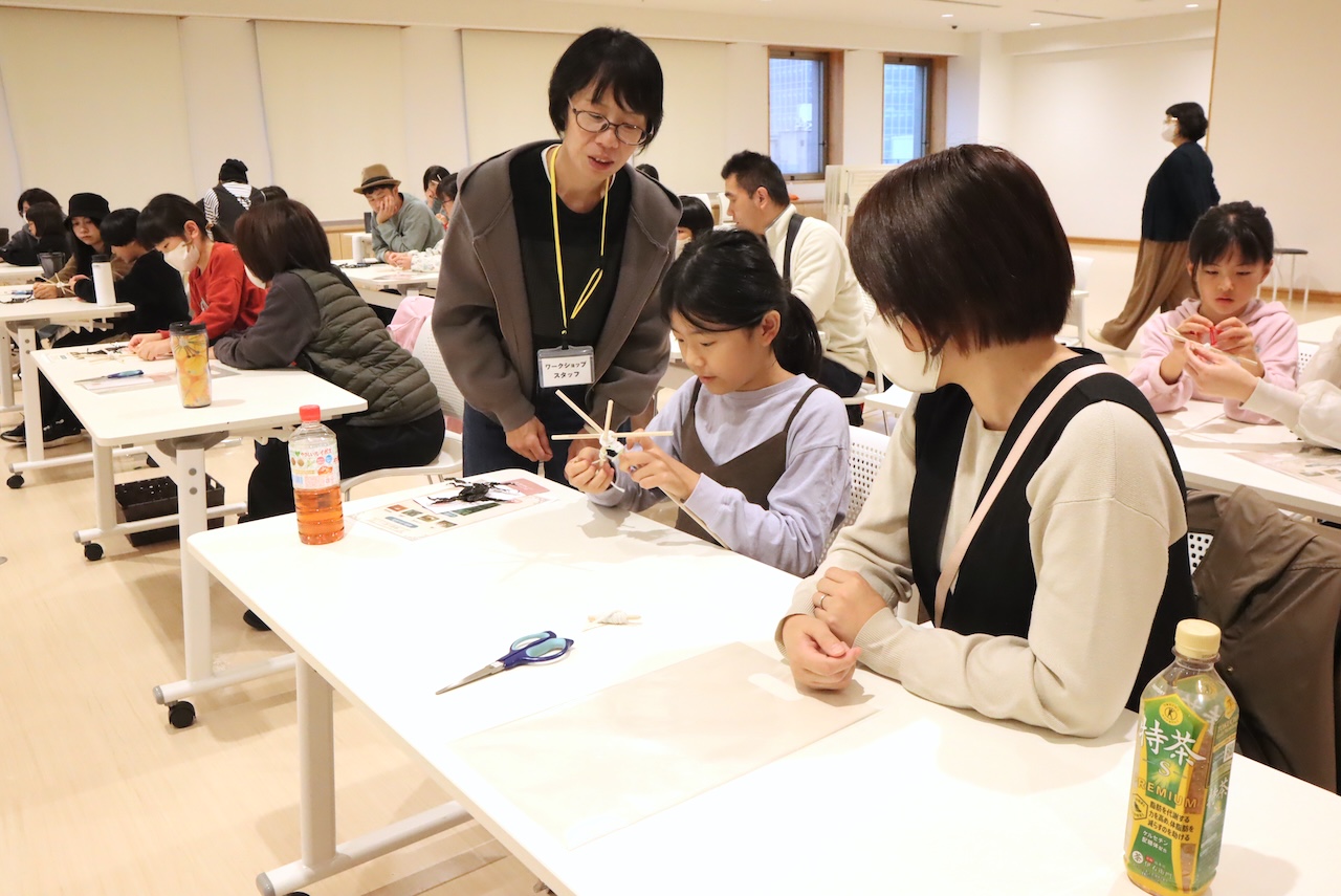途中でつまずいても大丈夫!参加者のみなさんとお話しすることが大好きなスタッフたちが、製作のお手伝いをしながらお声がけしていきました。