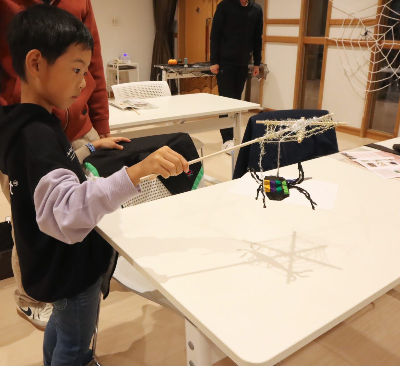 みんな、作りたいものがどんどん出てきた様子。個性的な蜘蛛と蜘蛛の巣がたくさん出来上がりました!