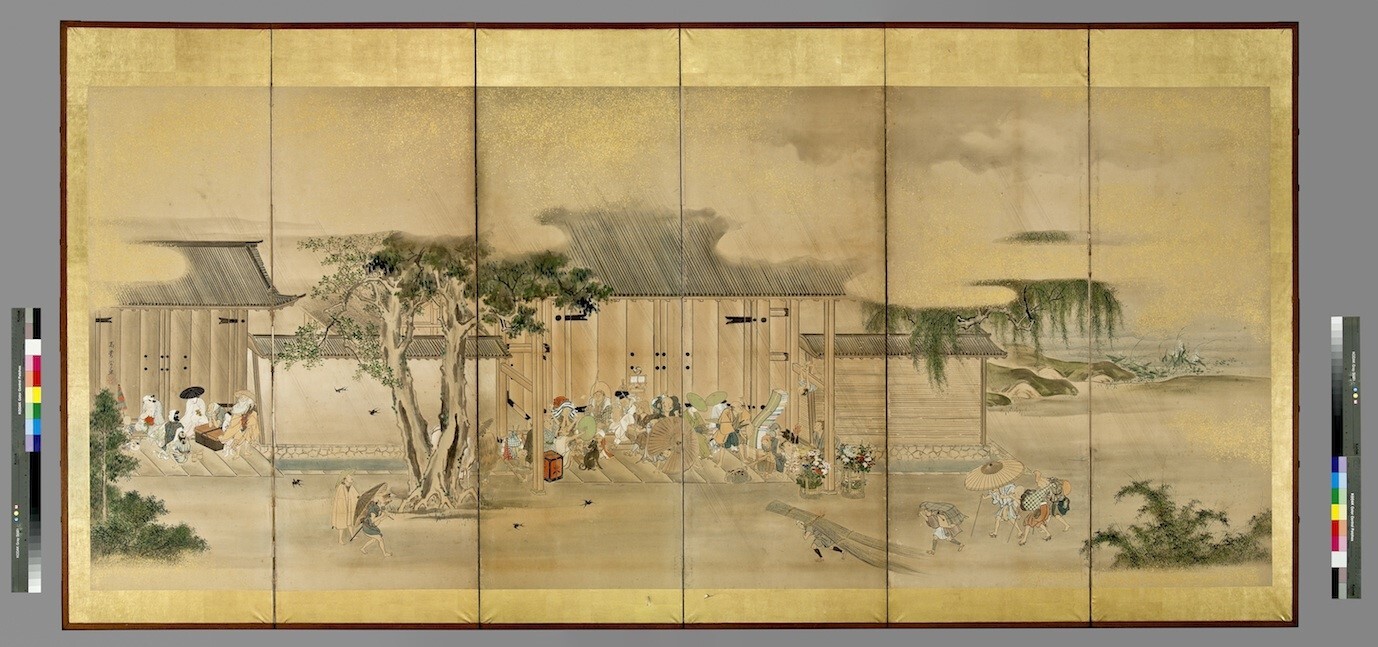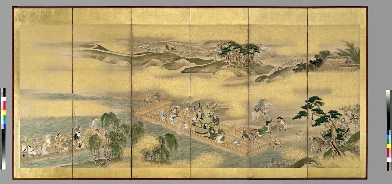 Scenes of People Taking a Ferryboat and Shelter from the Rain